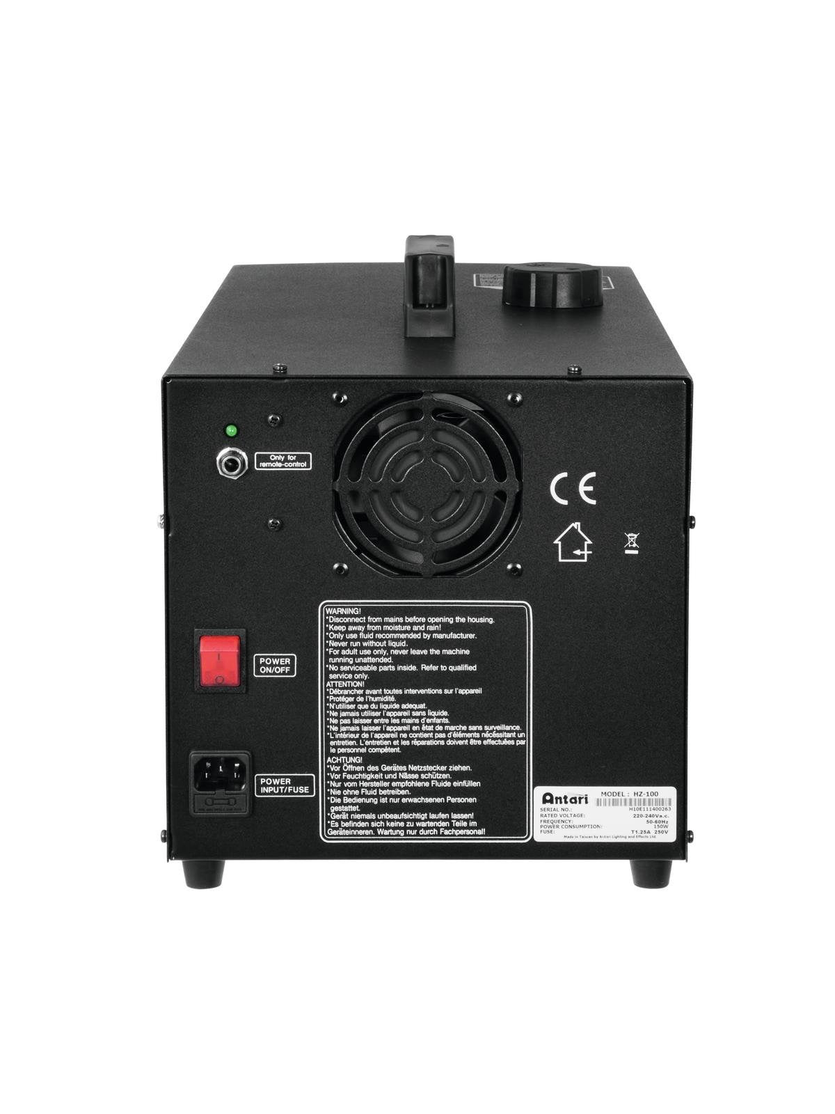 Der HZ-100 ist mit einem effizienten, wartungsfreien Luftkompressor ausgestattet und benötigt keine Aufwärmzeit. Schalten Sie einfach den Strom ein und der schöne, durchscheinende Dunst füllt den Raum im Handumdrehen. Durch seinen Dunstübertragungsmechanismus wird der Dunst in Nanopartikel zerlegt, die das Licht reflektieren und helle und farbenfrohe Lichtstrahlen erzeugen.