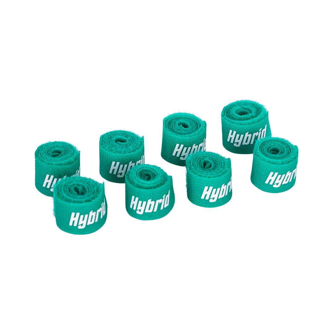 Hybrid bietet 4 verschiedenfarbige Klettbänder (schwarz, rot, blau und grün) zur farblichen Identifizierung sowie 3 verschiedene Größen (150 mm, 250 mm und 340 mm) für unterschiedliche Kabellängen.