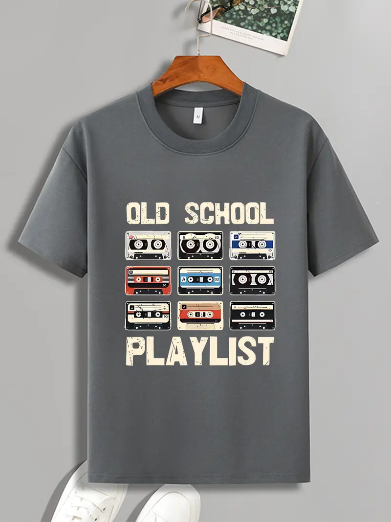 T-Shirt mit Old School Playlist-Aufdruck (grau)