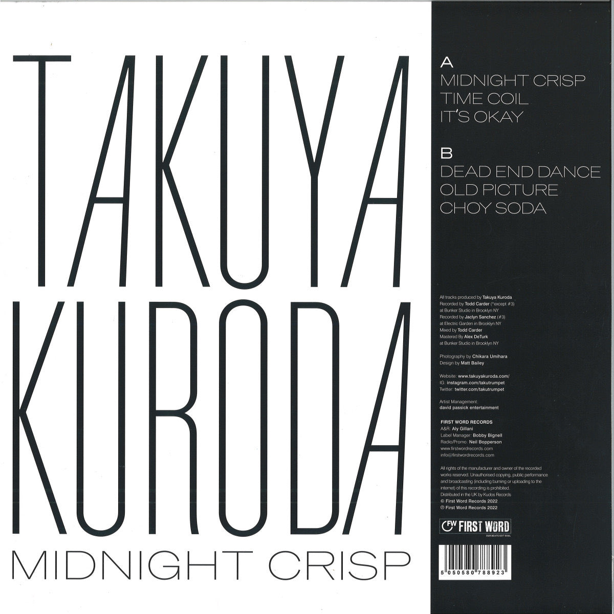 Takuya Kuroda ist ein hoch angesehener Trompeter und Arrangeur, der in Kobe, Japan, geboren wurde und in New York City lebt. „Midnight Crisp“ ist Takuyas siebtes Studioalbum, das vollständig selbst produziert wurde und nach dem hochgelobten „Fly Moon Die Soon“ aus dem Jahr 2020 auch beim britischen Label First Word (Gewinner des Worldwide Award Label of the Year 2019) erschien. Das Album besteht aus sechs neuen Titeln und zeigt erneut seinen einzigartigen Hybridsound, der gefühlvollen Jazz, Funk, Post-Bop, Fusion und Hip-Hop miteinander verbindet.