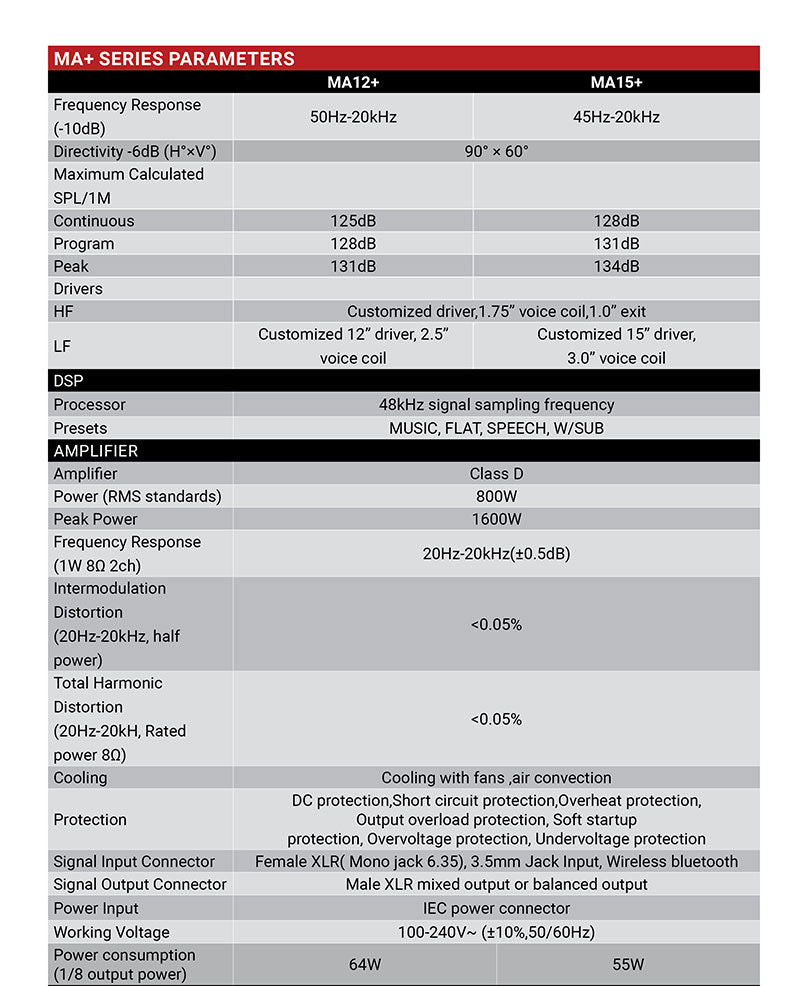 Regardless if you’re a performer, audio technician, or event organizer, the MA12+ delivers the clarity, punch, and reliability you need in a professional loudspeaker.