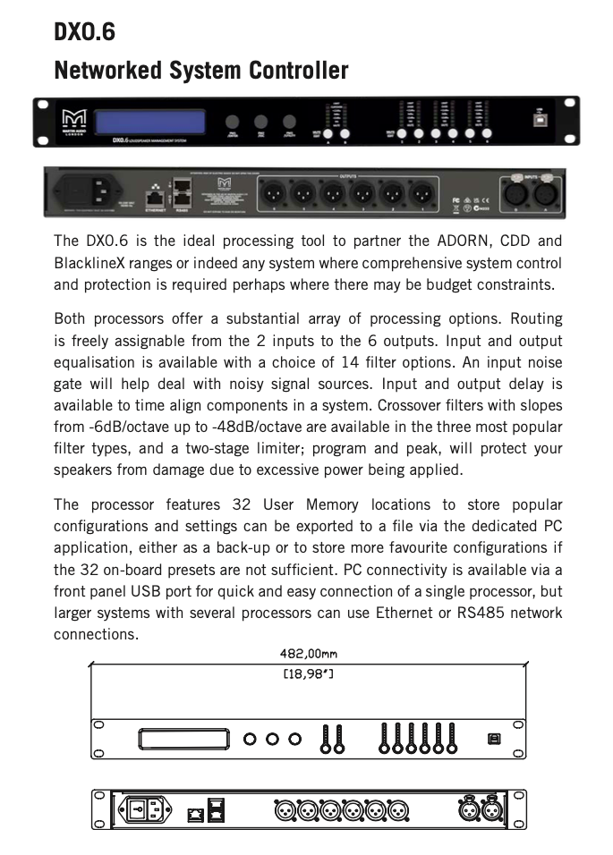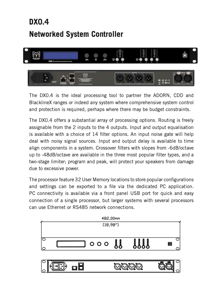 The DX0.4 is the ideal processing tool to partner the ADORN, CDD and BlacklineX ranges or indeed any system where comprehensive system control and protection is required, perhaps where there may be budget constraints.