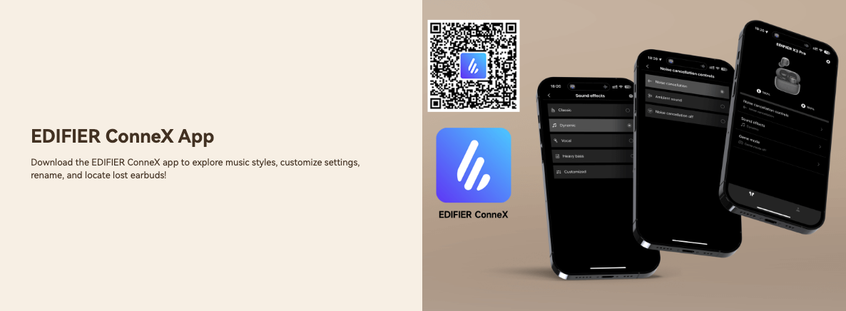 Personalize your audio and controls via the EDIFIER ConneX app.