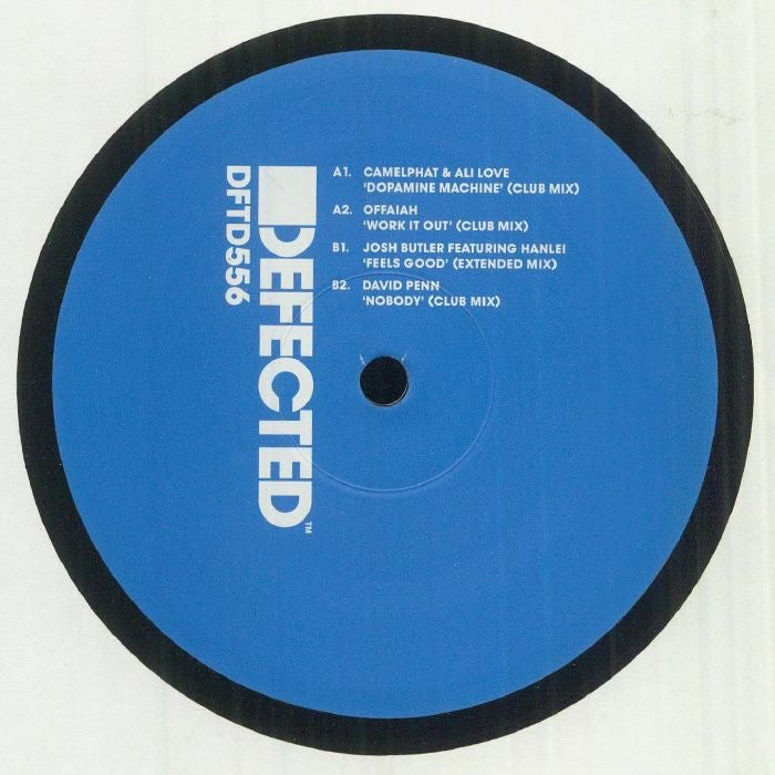 Defected once again have the main room at peak time in mind - with these four scorchers aimed squarely at said dancefloors. From current scene favourites Camelphat: the masked crusaders teaming up with the man with the golden voice Ali Love, on the adrenalised "Dopamine Machine" (club mix), Argentinian producer Offaiah rounds up the A side with the deep and sexy bounce of "Work It Out" (club mix). On the flip, Northern tech house hero Josh Butler shows he can do vocal house too on the very Kerri Chandler influenced "Feels Good" (feat Hanlei - extended mix) while Spanish veteran David Penn does for that classic Defected style of funky house on the uplifting "Nobody" (club mix).