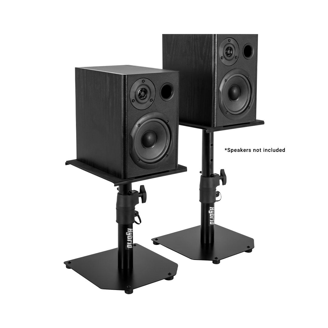 O Hybrid SS06 é um suporte profissional de mesa para alto-falantes de monitor com altura ajustável de 300 mm a 500 mm. É adequado para qualquer alto-falante de monitor que não exceda 20 kg. O SS06 é fabricado com chapa e tubos de aço de alta qualidade e finalizado com revestimento em pó preto.