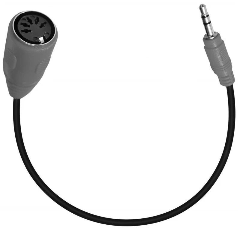 Este adaptador MIDI permite que você conecte dispositivos MIDI que usam cabos MIDI padrão aos minijacks estéreo usados pelos produtos 1010music. O adaptador tem um minijack estéreo macho em uma extremidade e um conector MIDI DIN fêmea de 5 pinos na outra, e tem 22 cm / 8,5" de comprimento. Ele também é útil como um conversor para conectar a outros dispositivos MIDI que usam um mapeamento diferente de sinais MIDI para os minijacks estéreo.