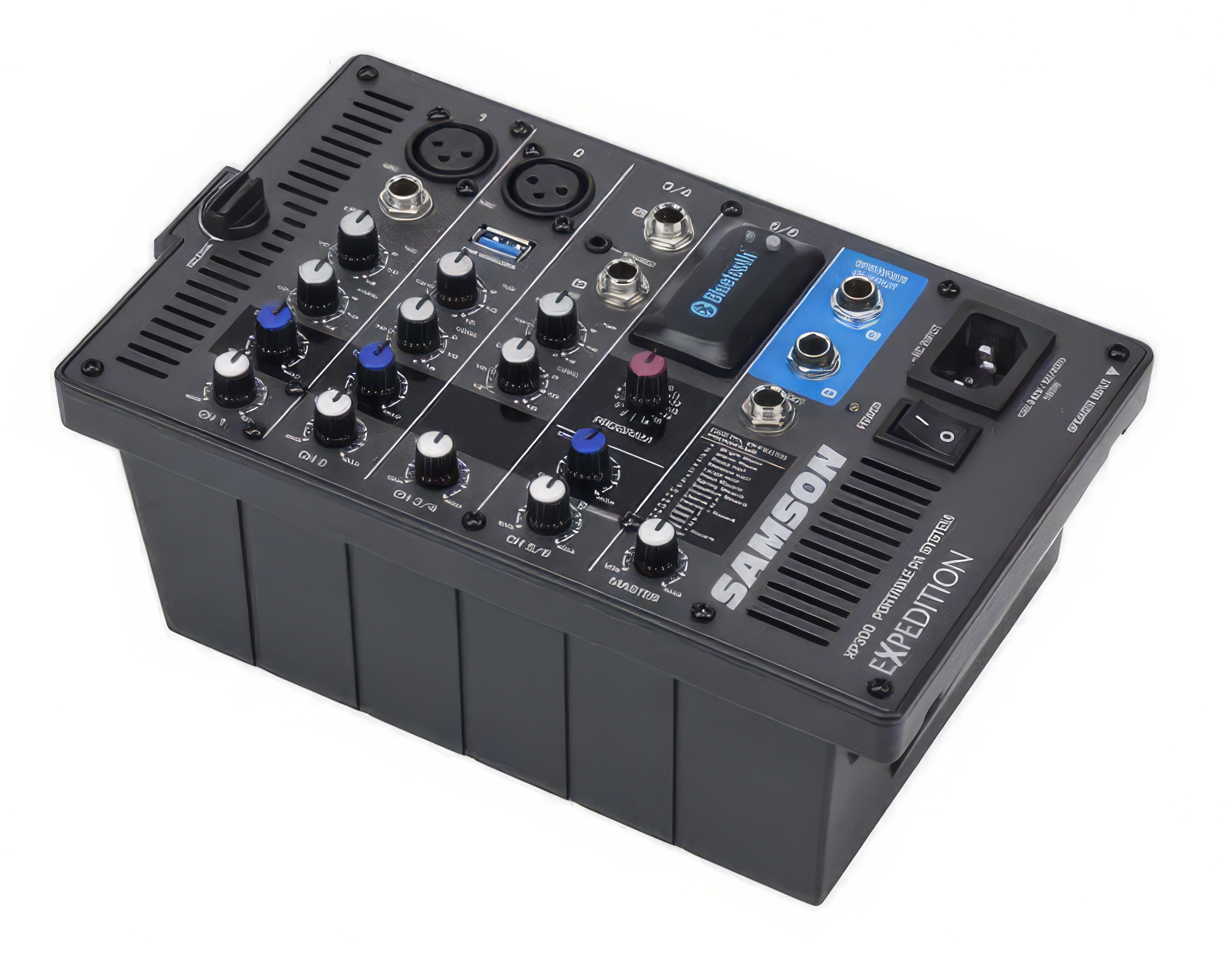 Possui duas entradas XLR para conexão de microfones e um canal para conexão de sinal estéreo de um MP3 player ou outro dispositivo eletrônico. Há também um processador de efeitos digitais de 24 bits integrado para adicionar efeitos com qualidade de estúdio à sua voz ou instrumentos. Para reprodução de música, o XP300 possui conectividade sem fio Bluetooth® para transmitir áudio do seu smartphone, tablet ou computador. O mixer oferece uma saída robusta, com 300 watts de potência total da seção leve do amplificador Classe D.