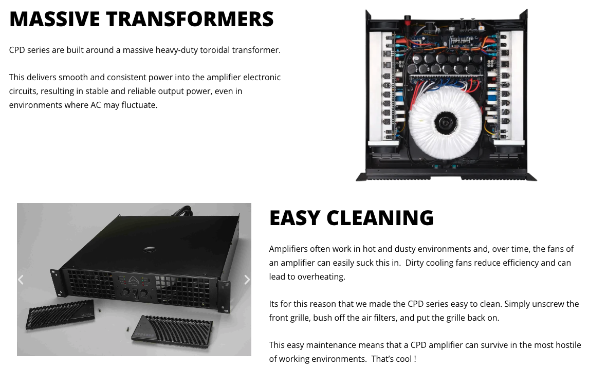 Esta fácil manutenção significa que um amplificador CPD pode sobreviver nos ambientes de trabalho mais hostis. Isso é legal !