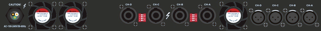 4 x 595 W @8 Ω / Estéreo
