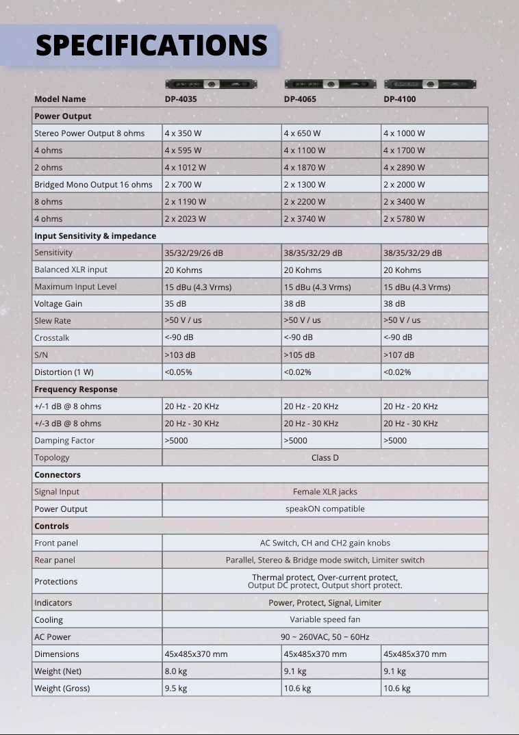 2 x 2020 W @4 Ω / Ponte